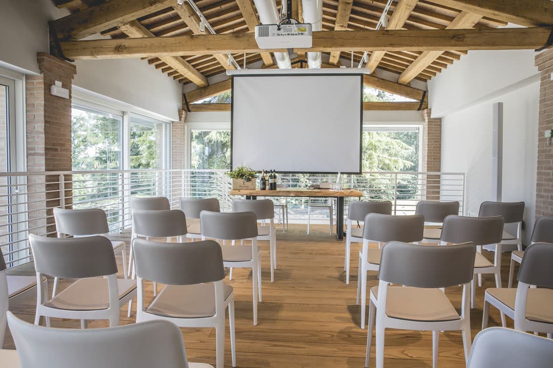 La Sala Sangiovese è per questo lo spazio per meeting e degustazioni che può sfruttare il naturale dehor per eventi primaverili ed estivi, realizzabili sul prato o anche nel vigneto.